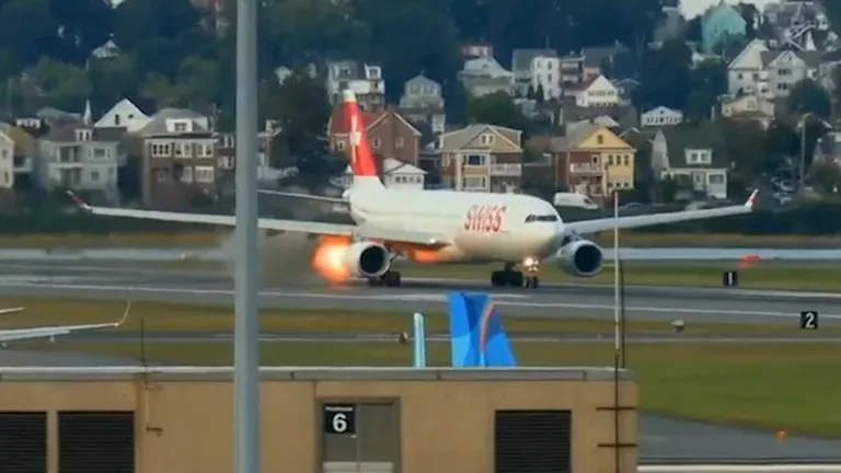 اشتعلت النيران في أحد محركات طائرة تابعة لشركة الخطوط الجوية السويسرية الدولية أثناء محاولتها الإقلاع في مطار بوسطن لوجان الدولي، بالولايات المتحدة الأمريكية.