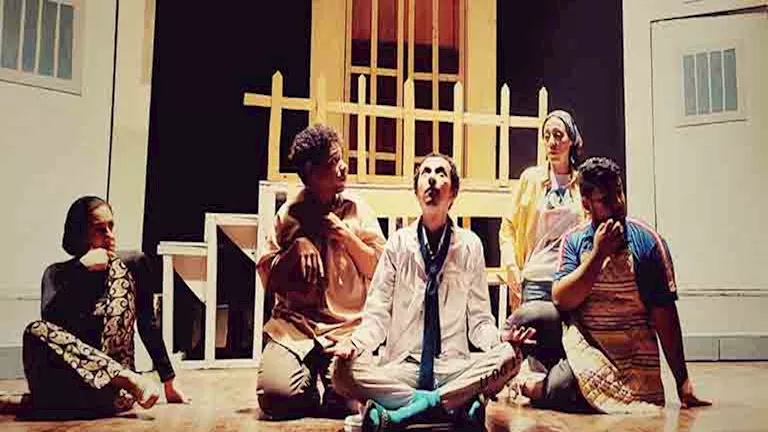 وتدور الأحداث حول الدكتورة “شاهيناز” مبعوثة اليونسكو، التي تصل إلى مستشفى للأمراض العقلية وتلتقي بالدكتور “سايكو” مدير المستشفي في محاولة لإدخال العلاج بالفنون إلى عالم المرضى النفسيين لتكتشف أن المجانين الخمسة يمتلكون مواهب مدهشة تبدأ من الغناء والتمثيل وتنتهي بالراب والصحافة والفيزياء النووية