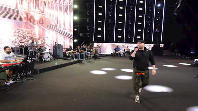 بالصور.. إصابة حسام حبيب بكسر في القدم خلال تحضيراته لحفله الغنائي بمو