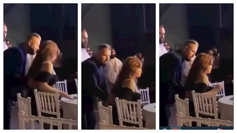وأظهر مقطع الفيديو، نجاح الحارس الشخصي في الإمساك بـ هيفاء وهبي قبل سقوطها على الأرض أثناء جلوسها على أحد المقاعد.