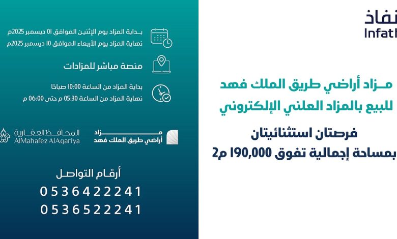 فرص استثنائية بمزاد أراضي طريق الملك فهد شمال العاصمة الرياض