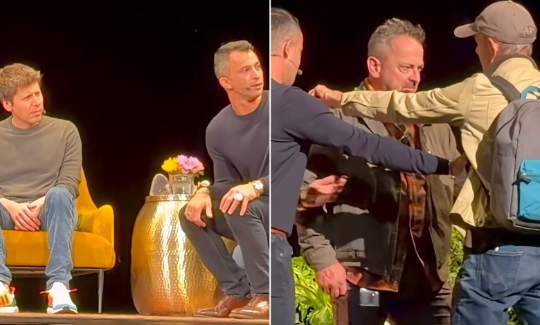 شاهد رجل يقاطع “سام ألتمان” على المسرح ليسلمه أمر المحكمة