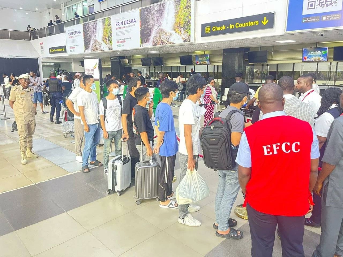 وأوضحت لجنة الجرائم الاقتصادية والمالية في بيان رسمي أن الـ51 فردا الذين تم ترحيلهم يوم الأربعاء، هم جزء من 192 أجنبيا، معظمهم من الصين والفلبين، أُلقي القبض عليهم في 10 ديسمبر 2024 خلال مداهمة استهدفت مقرا لشبكة إجرامية في شارع أوين جولايمي بمنطقة فيكتوريا آيلاند في لاغوس.