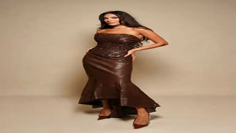 ظهرت بفستان بني براق بقصة الكورسيه، أظهر قوامها المثالي وأضاف لمسة من الفخامة الهوليوودية.