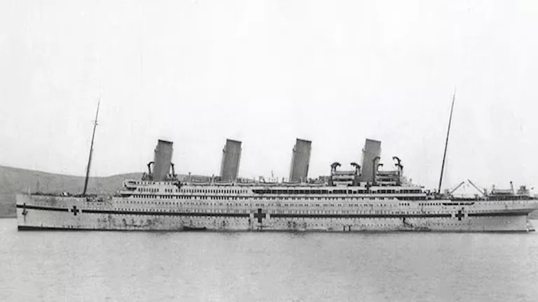 ووفقا لصحيفة “ديلي ميل” فإن السفينة التي بنتها نفس الشركة المالكة لـ”تايتنك” كانت مُعدة في الأصل كخط فاخر للرحلات البحرية، لكنها حولت إلى مستشفى عائم لنقل الجرحى عام 1915. وفي رحلتها الأخيرة بتاريخ 12 نوفمبر 1916، اصطدمت بلغم بحري في بحر إيجه وغرقت في أقل من ساعة، ما أسفر عن مقتل 30 شخصًا من أصل 1060 كانوا على متنها.