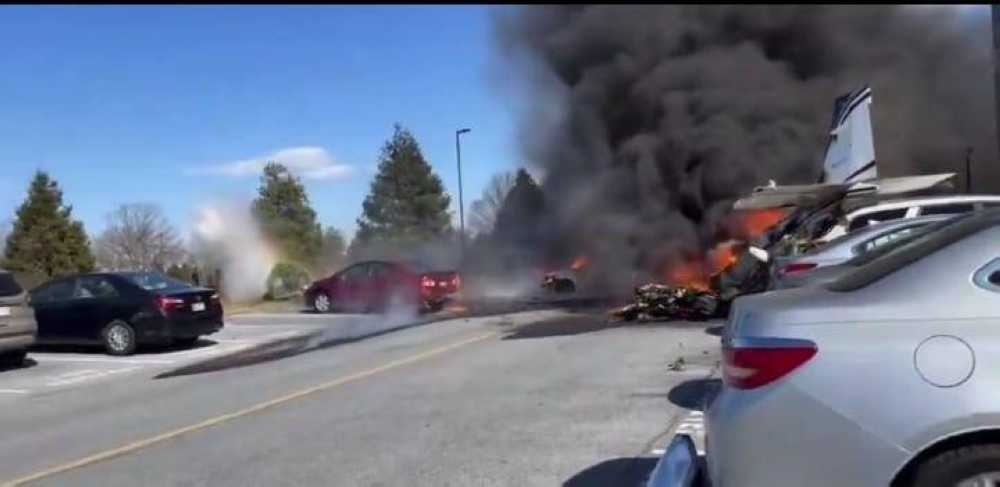 كارثة جوية جديدة بأمريكا.. تحطم طائرة بموقف سيارات قرب مطار بنسلفانيا