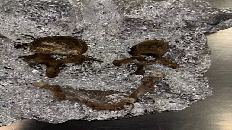 وخلال إجراءات التفتيش الروتيني، اكتشف الضباط أن العظام كانت ملفوفة بورق ألومنيوم، إلى جانب نباتات محظورة وسيجار غير مصرّح به.