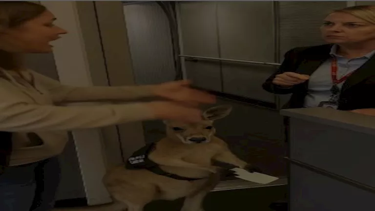 ويظهر الفيديو امرأة تتجادل مع مضيفة طيران حول السماح لهذا الكنغر بالركوب على متن الطائرة، بينما يبقى الحيوان هادئا وصبورا، وهو ما أضفى على المشهد طابعا طريفا وغير معتاد.