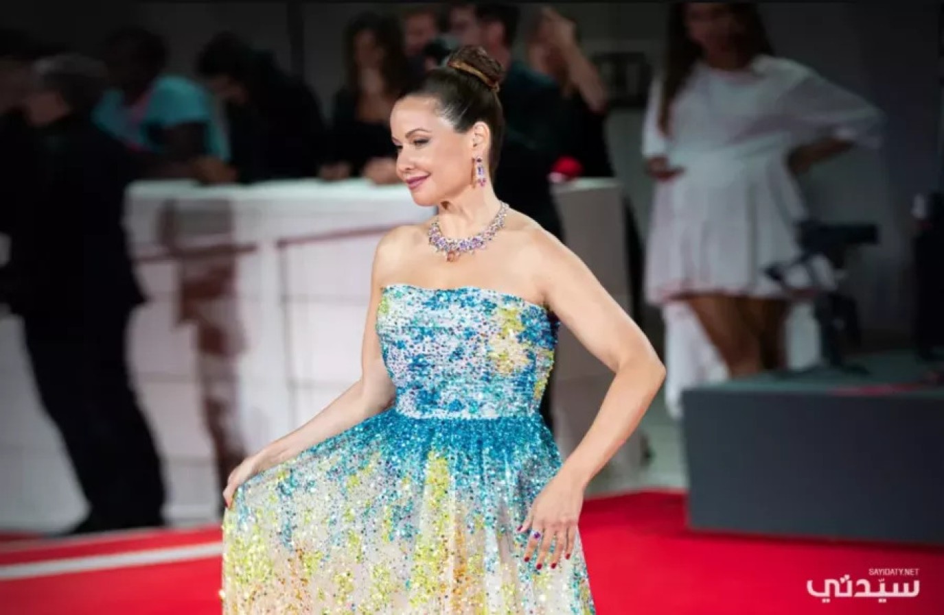 ريا أبي راشد تتلألأ بفستان الكاب الفضي