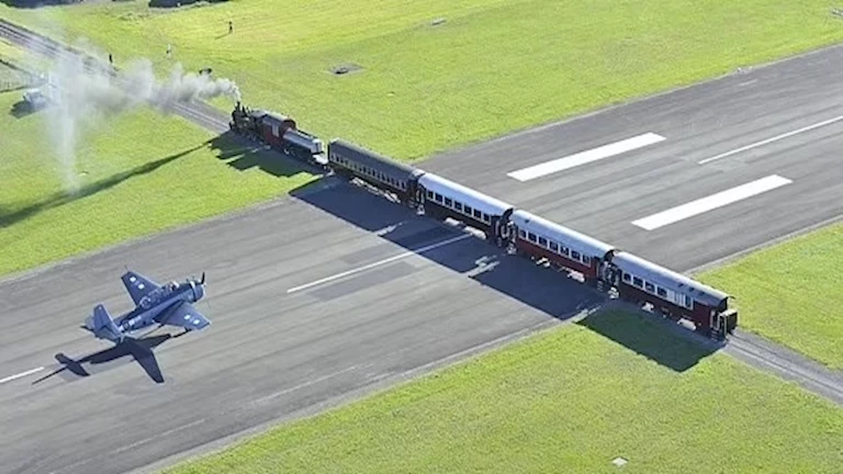 واعتبارًا من العام الماضي، أصبح قطار البخار التابع لشركة Gisborne City Vintage Railway هو القطار الرئيسي الذي يعبر المطار للذهاب من جيزبورن إلى موريواي.