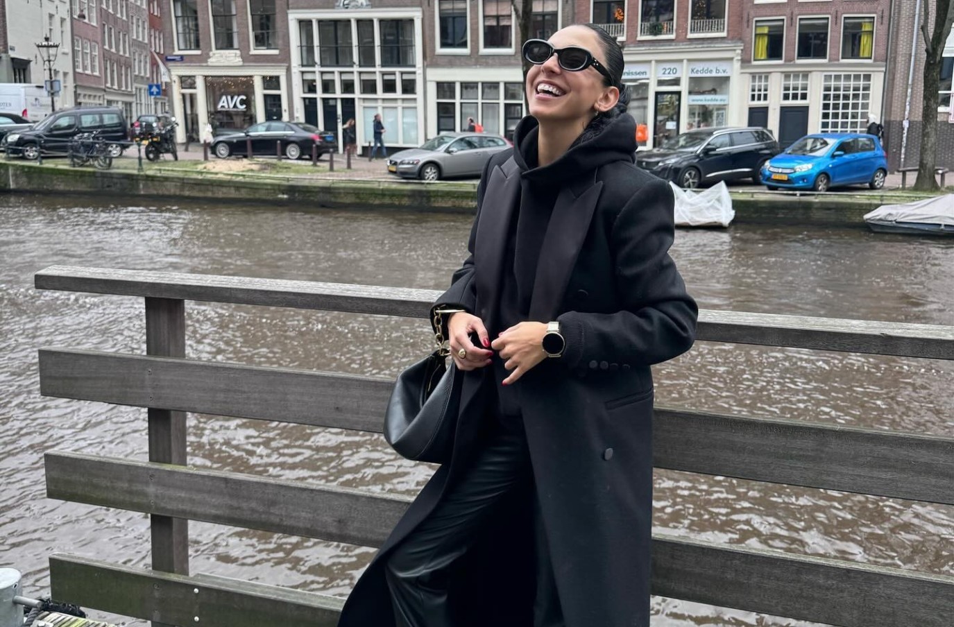 إضافة بنطلون الجلد الأسود إلى إطلالة يومية مع فستان أسود قصير يمنحها جرأة وعصرية. بينما يوازن السنيكرز الأبيض والأسود بين الراحة والأناقة، مكملاً الإطلالة بطريقة مثالية. هذا التنسيق يثبت أن الموضة يمكن أن تكون عملية ومريحة دون التخلي عن الأناقة.