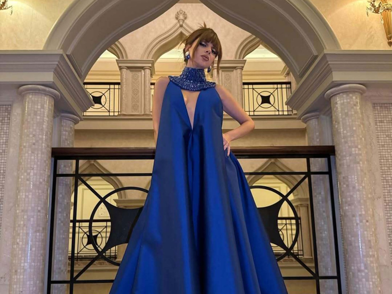 ميريام فارس تتألق بفستان أزرق ملكي