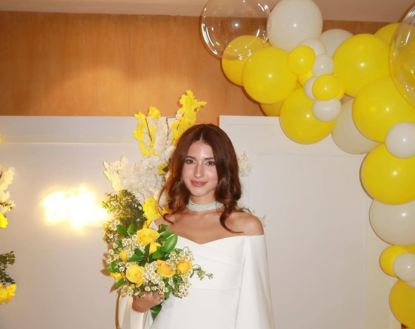 وشاركت “شيرين” من خلال حسابها على “إنستغرام”؛ مقطع فيديو وثقَّت من خلاله لحظة دخولها القاعة التي غلب عليها اللونان الأبيض والأصفر، على الموسيقى والزغاريد والتصفيق، ما أضاف لمسةً من البهجة والسعادة إلى الحفل، كما برزت تفاصيل الزينة والورود والإضاءة التي خطفت الأنظار لقاعة الحفل، والتي عكست شخصية “شيرين” الهادئة والناعمة والمبهجة أيضاً.