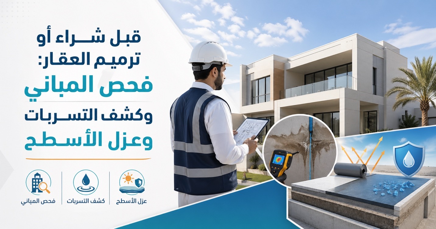 العقار الجيد ليس فقط ما يبدو جميلًا عند المعاينة، بل ما تكون مشكلاته واضحة ومفهومة قبل الشراء أو الترميم. فحص المباني يساعدك على رؤية الصورة العامة، وكشف التسربات يمنعك من علاج الرطوبة بشكل مؤقت، وعزل الأسطح يحمي المبنى من الأمطار والحرارة إذا تم تنفيذه بعد تشخيص صحيح.