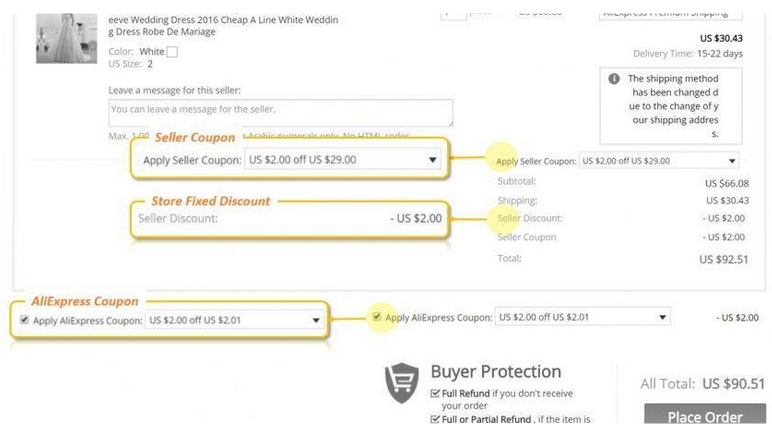 - خصم علي اكسبرس مضاعف. نظرًا لفعالية كود علي اكسبرس على المنتجات المخفضة، فإنّك يمكنك الاستماع بخصم مضاعف عند تطبيق رمز الخصم في ملخص شروتك، فأنت بذلك ستستمتع بالخصومات الحصرية ضمن حملات العروض والتخفيضات التي يطلقها متجر AliExpress والتي تجدها جميعها على موقع الموفر في الزمن الحقيقي، بالإضافة إلى خصم الكود. وبناء على ذلك، فإنك يمكنك شراء العديد من المنتجات بخصم حتى 70% وأكثر، بالإضافة إلى خصم الكود حتى 30% عند تطبيق رمز الكوبون في ملخص الدفع.