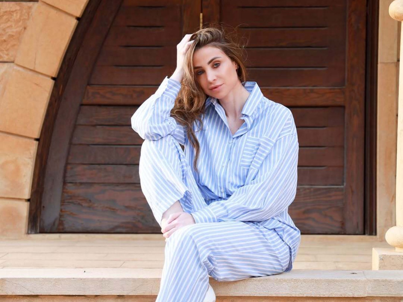 كارلا حداد تعتمد القميص المقلم مع بنطلون قماش