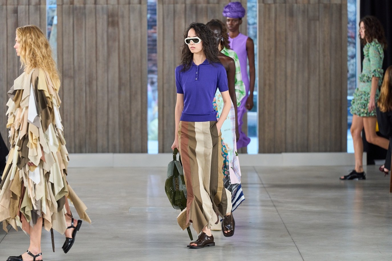 فعلى عكس الموسم السابق الذي تميز بالدقة والصرامة، اختار أبيولازا أن يخوض مغامرة جديدة هذا العام، حيث لا مكان للكمال بقدر ما هناك مساحة للتجريب وتحويل المواد المتواضعة إلى إطلالات تحمل قيمة جمالية عالية، فقد شاهدنا الفساتين والتنانير بتقنية Patchwork باستخدام بقايا الأقمشة، فيما غطت قصاصات المخزون القديم لتجذبنا معاطف الترينش، بينما بدت بعض الإطلالات وكأنها مستوحاة من أكياس البطاطا القديمة.