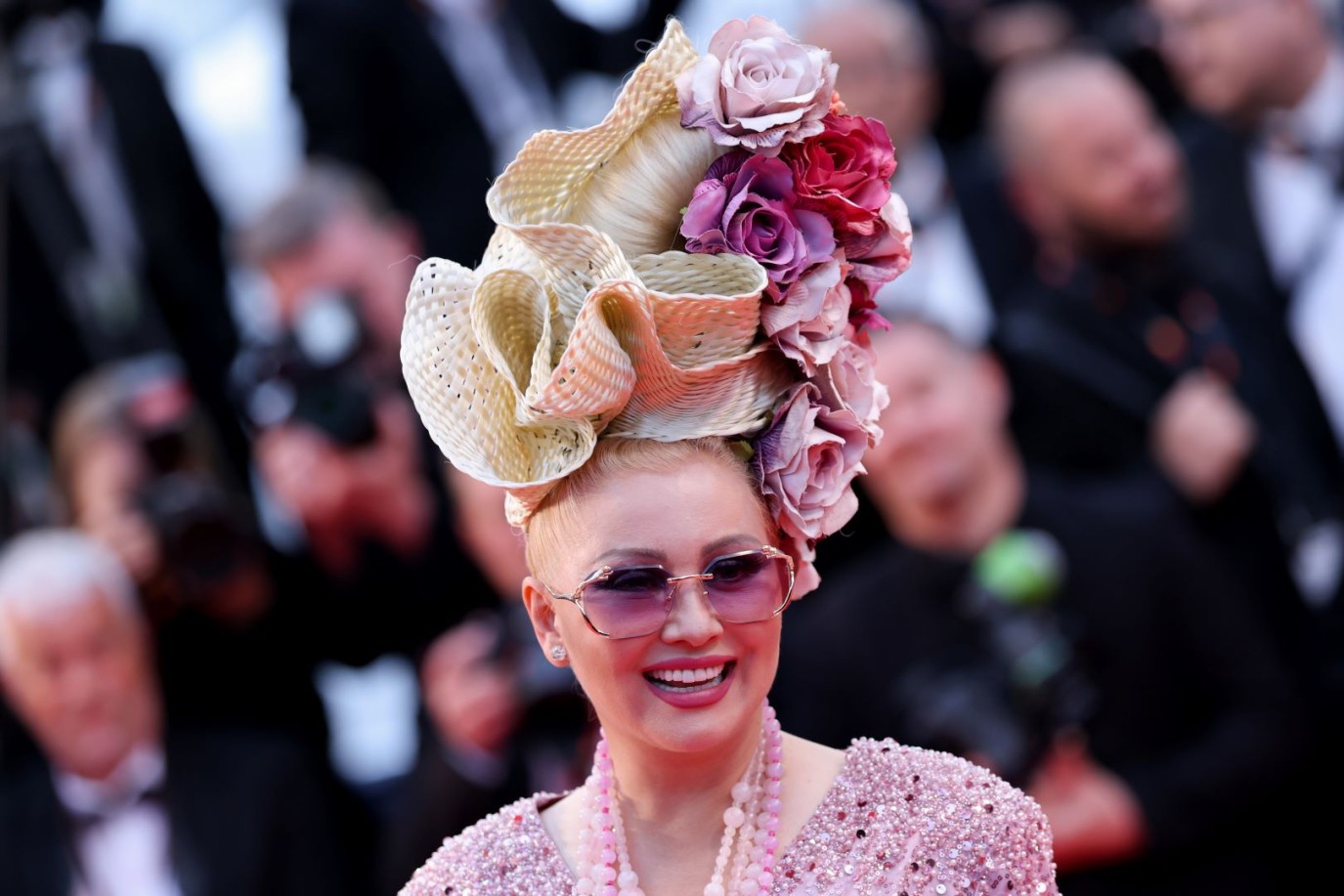 كعادتها، لم تمر النجمة إيلينا لنينا Elena Lenina مرور الكرام، فاختارت أكسسوار شعر ضخماً جداً على شكل بناء هندسي مزين بالورود الكبيرة بألوان حيوية، تم تثبيته على تسريحة مرفوعة للغاية. الزينة التي رافقت التسريحة أضافت طابعاً مسرحياً لافتاً جعلها من أكثر الإطلالات غرابة في المهرجان.