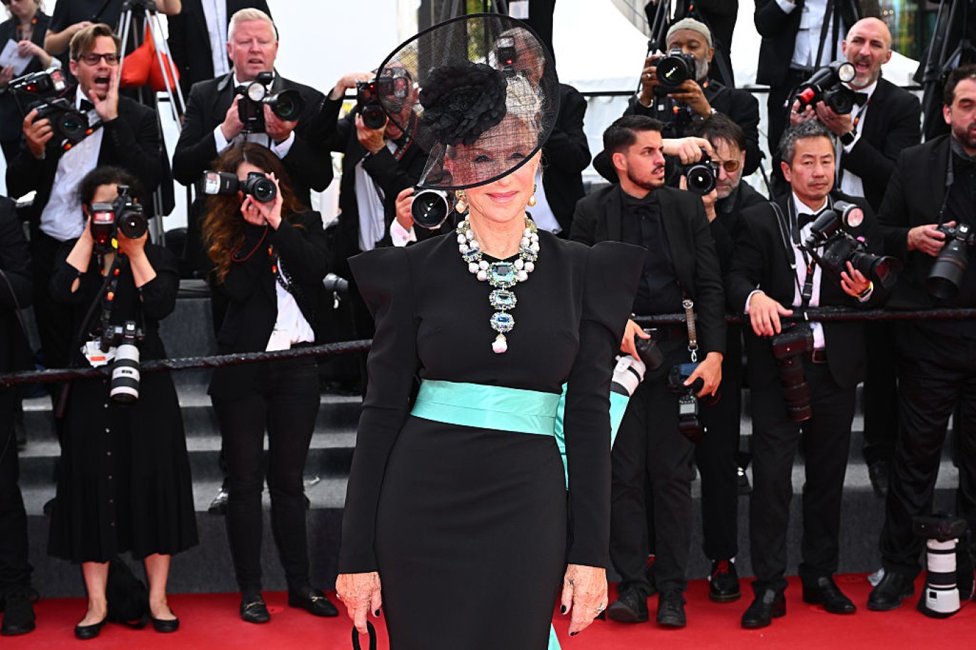 اعتمرت النجمة هيلين ميرين Helen Mirren خلال افتتاح فيلم Colours Of Time بفستان من الكريب الأسود يتسم بياقة قارب، وهو مزود بحزام من الساتان الأخضر النعناعي، وقد تزينت بقلادة مجوهرة ضخمة. واتسمت قبعتها بشكل الوردة، وهي من قماش الرافيا الأسود الذي يظلل وجهها.