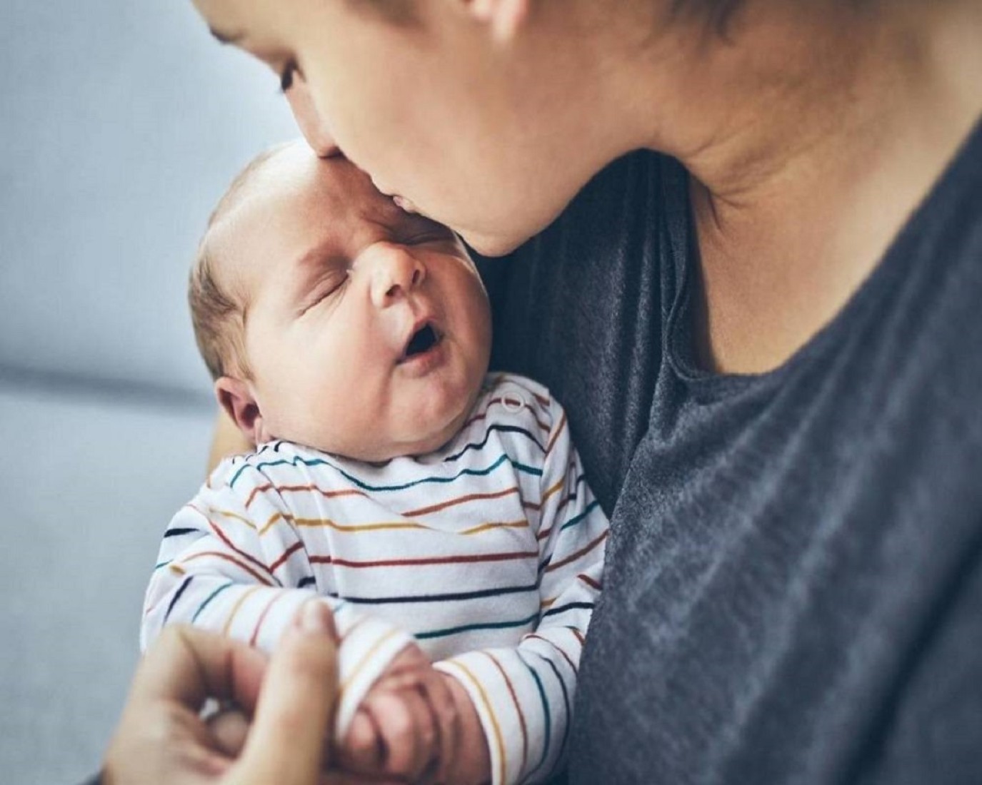 أم تحمل مولودها بعد الولادة