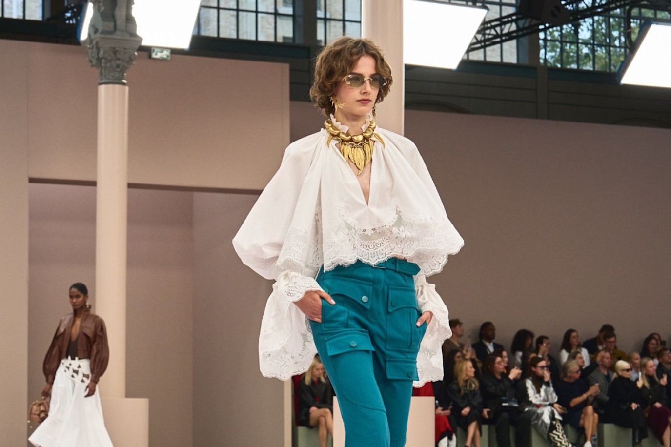 التوازن في تنسيقه: يمزج هذا اللون بين هدوء الأزرق ونضارة الأخضر، مما يخلق شعورًا متوازنًا وواقعيًا ويمكن تنسيقه مع الأسود كما فعلت دار بيار كاردان Pierre Cardin.