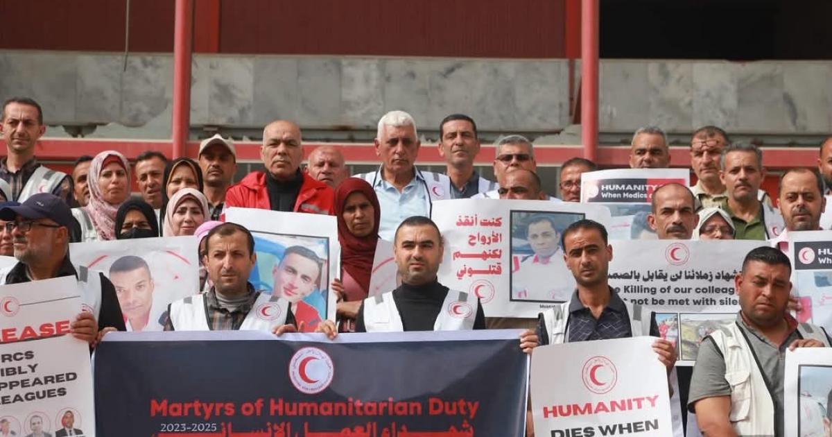 في مشهد وطني موحد امتد من الوطن إلى الشتات، نظّمت جمعية الهلال الأحمر الفلسطيني، اليوم الأربعاء، وقفة تضامنية في كافة فروعها، استجابةً لدعوة من الحركة الدولية للصليب الأحمر والهلال الأحمر، للمطالبة بتشكيل لجنة تحقيق دولية مستقلة في جريمة استهداف طواقمها الطبية في محافظة رفح جنوب قطاع غزة ، والتي أدت إلى استشهاد ثمانية من المسعفين أثناء أداء واجبهم الإنساني.