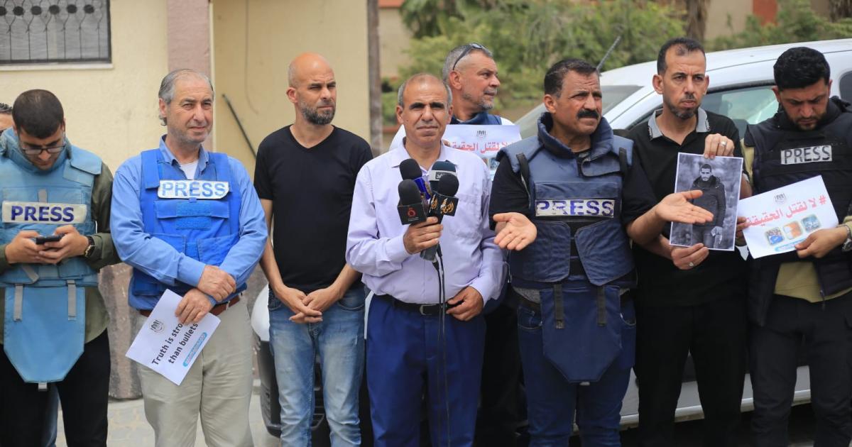 نظّمت نقابة الصحفيين الفلسطينيين، اليوم الثلاثاء، 13 مايو 2025، وقفة في ساحة مجمع ناصر الطبي بمحافظة خان يونس جنوب قطاع غزة ، تنديدًا باغتيال الصحفي حسن اصليح، واستمرار استهداف الاحتلال للطواقم الصحفية في القطاع.