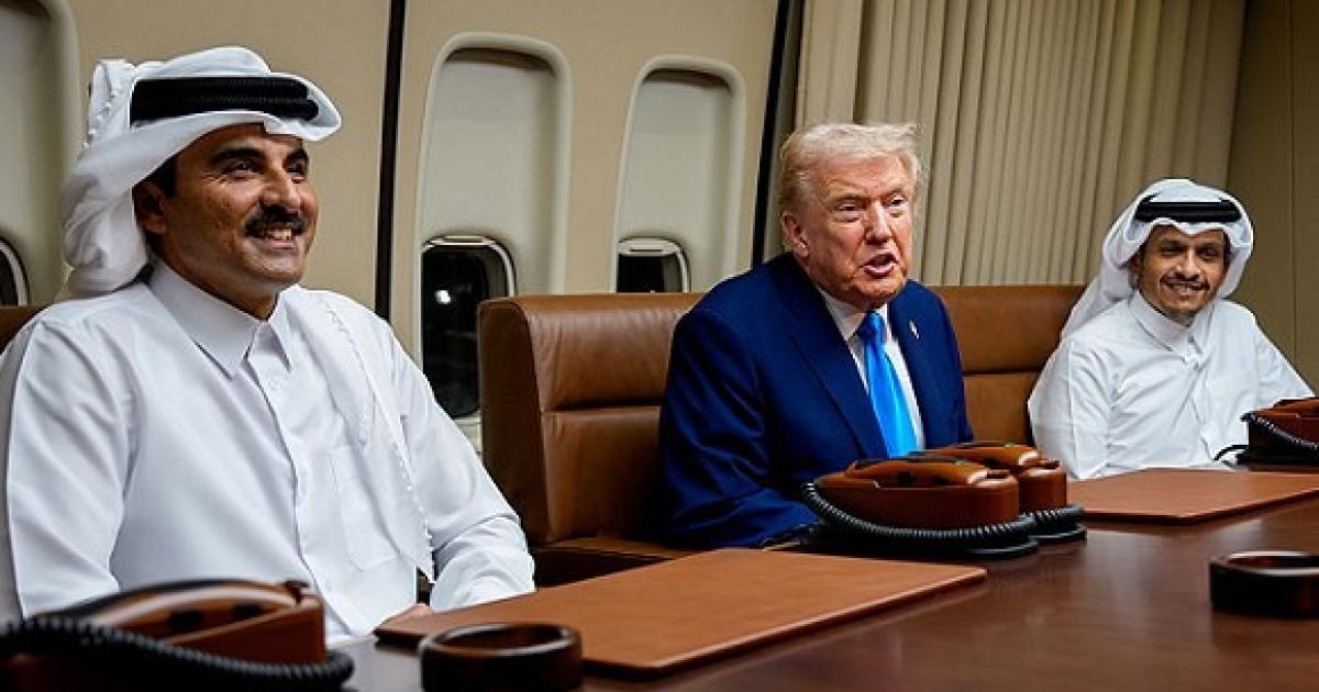 وصعد أمير قطر تميم بن حمد آل ثاني ورئيس الوزراء ووزير الخارجية محمد بن عبد الرحمن آل ثاني إلى الطائرة “إير فورس وان”، إثر هبوطها في قاعدة العُديد الجوية التي تضم المقر العام الإقليمي للجيش الأميركي وآلافا من الجنود الأميركيين.