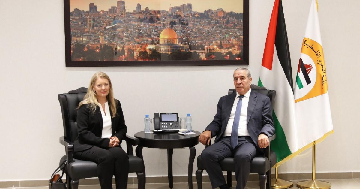 بحث نائب رئيس دولة فلسطين، نائب رئيس اللجنة التنفيذية لمنظمة التحرير الفلسطينية حسين الشيخ ، مع القنصل العام البريطانية هيلين ونترتون، آخر المستجدات السياسية في ظل استمرار حرب الإبادة على قطاع غزة ، والاعتداءات المتصاعدة للمستوطنين في الضفة الغربية.