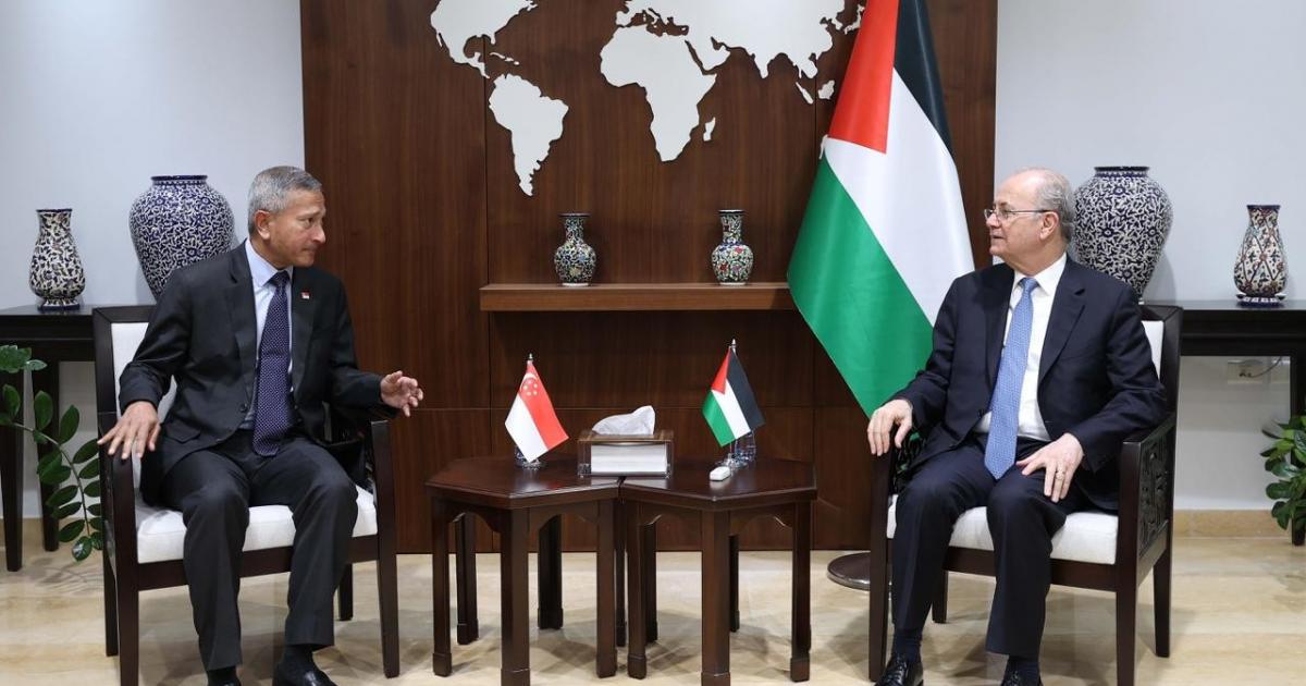 بحث رئيس الوزراء الفلسطيني محمد مصطفى، اليوم الثلاثاء في مكتبه ب رام الله ، مع وزير خارجية سنغافورة فيفيان بالاكريشنان، آخر المستجدات والتطورات الميدانية في قطاع غزة والضفة الغربية بما فيها القدس ، بالإضافة لتعزيز التعاون والقضايا ذات الاهتمام المشترك.