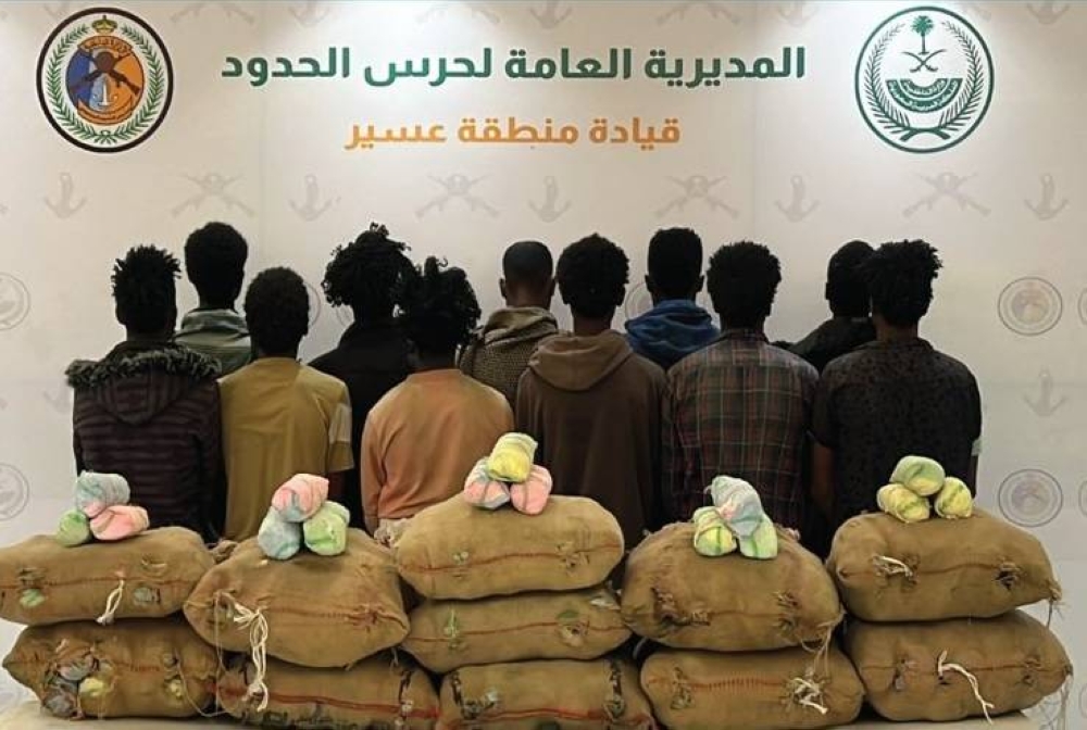 قبضت الدوريات البرية لحرس الحدود في قطاع الربوعة بمنطقة عسير على (11) مخالفاً لنظام أمن الحدود من الجنسية الإثيوبية، لتهريبهم (165) كيلوجراماً من نبات القات، واستُكملت الإجراءات النظامية الأولية بحقهم، وسلموا والمضبوطات لجهة الاختصاص.