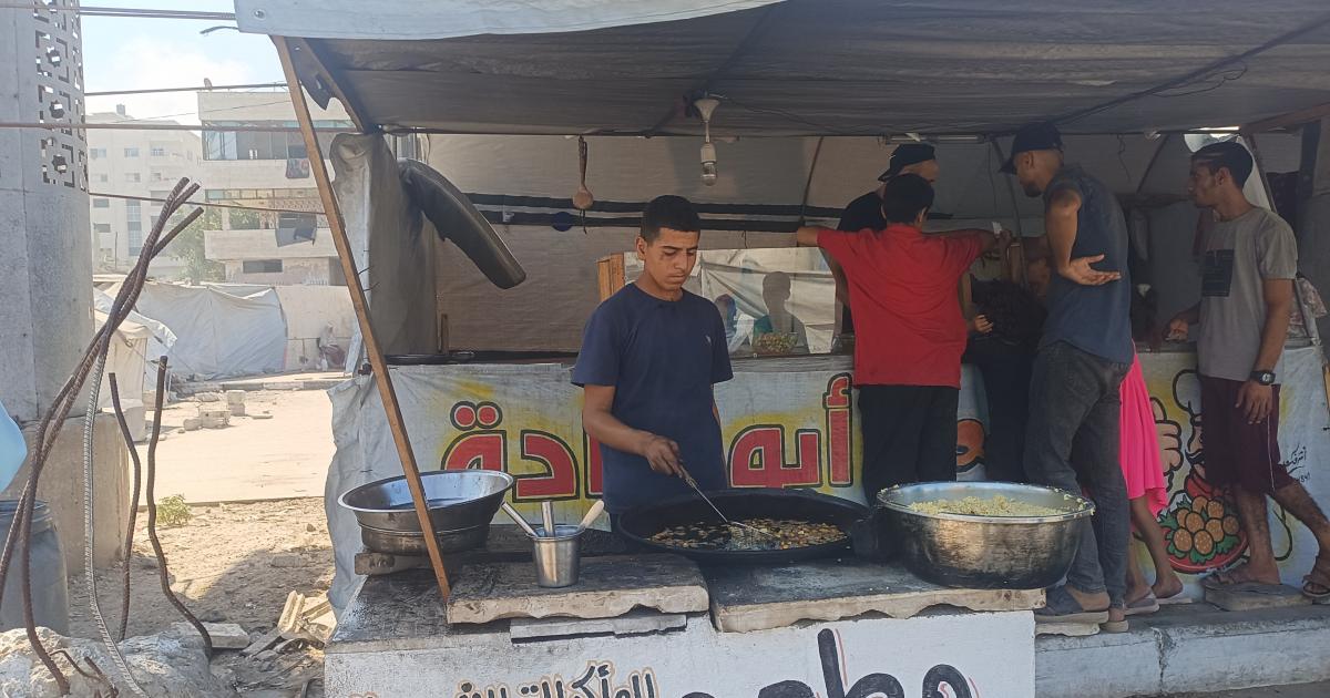 تقف الطوابير أمام محلات الفلافل القليلة التي ما زالت تعمل، في مشهد يعكس تمسك الناس بالحياة.