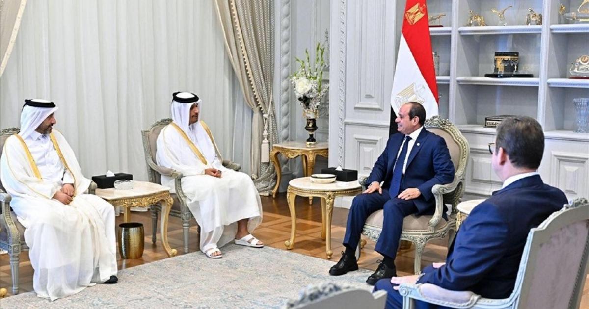 جاء ذلك خلال لقاء الرئيس المصري عبد الفتاح السيسي، برئيس الوزراء القطري محمد بن عبد الرحمن، بحضور رئيس المخابرات المصرية، اللواء حسن رشاد، ورئيس جهاز أمن الدولة القطري، خلفان الكعبي، وفق بيان للرئاسة المصرية، دون تحديد مدة زيارة المسؤولين القطريين.