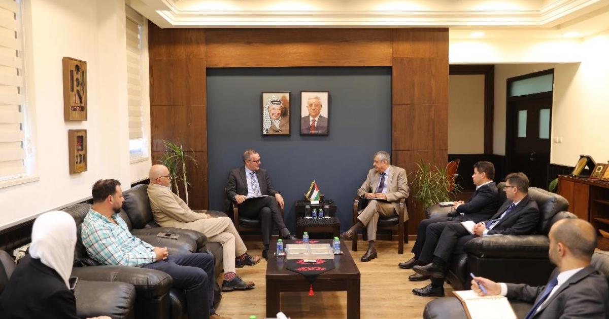 وحضر الاجتماع كل من: وكيل الوزارة مكرم دراغمة، والوكيل المساعد للشؤون الفنية ذوقان عطاونة، ورئيس فريق غزة للتعافي والإعمار رقية أبو الرب.