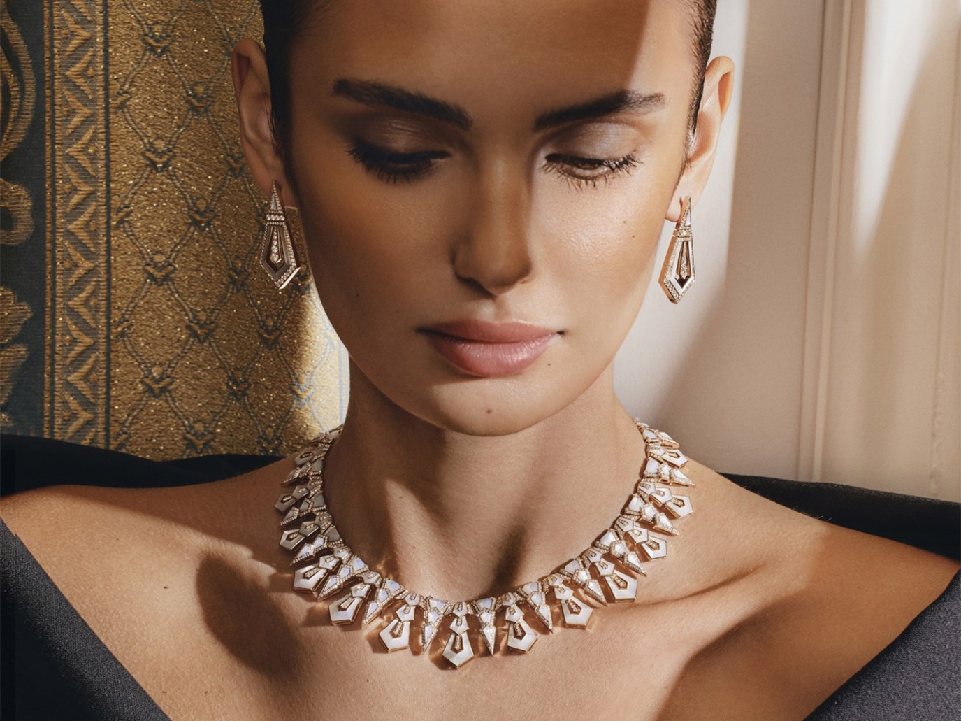 كانت عشرينيات القرن الماضي حِقبة ازدهرت فيها روح الإبداع الجريء والأناقة الصريحة، وقد عبّرت حركة الفنّ التزييني عن ذلك ببراعة، من خلال الأشكال الهندسية والجمال المعماري. استهوتنا تلك المرحلة بما فيها من تناغُم صارخ، وخامات فاخرة، وفخامة متمرّدة. ومن خلال بيجوكيو BijouQ، أردنا أن نعيد إحياء هذا الطابع الخالد بطريقة تلائم المرأة العصرية والواثقة من نفسها، والقادرة على التعبير عن شخصيتها من دون خوف. جاءت هذه القلادة بمثابة رسالة تقدير لعصر ذهبي في تاريخ التصميم، أعدنا تقديمه بنهج معاصر وصياغة دقيقة تليق بالمرأة اليوم.