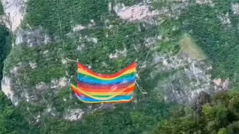 بعد أن تصدر جسر هواجيانج جراند كانيون عناوين الأخبار كأعلى جسر طريق في العالم، عاد إلى الواجهة مؤخرا، وهذه المرة بسبب مغامرة مثيرة للجدل تتحدى المتهورين بالقفز من الجسر إلى شبكة بألوان قوس قزح لتجنب السقوط في نهر بيبان على ارتفاع 625 مترًا (2051 قدمًا).