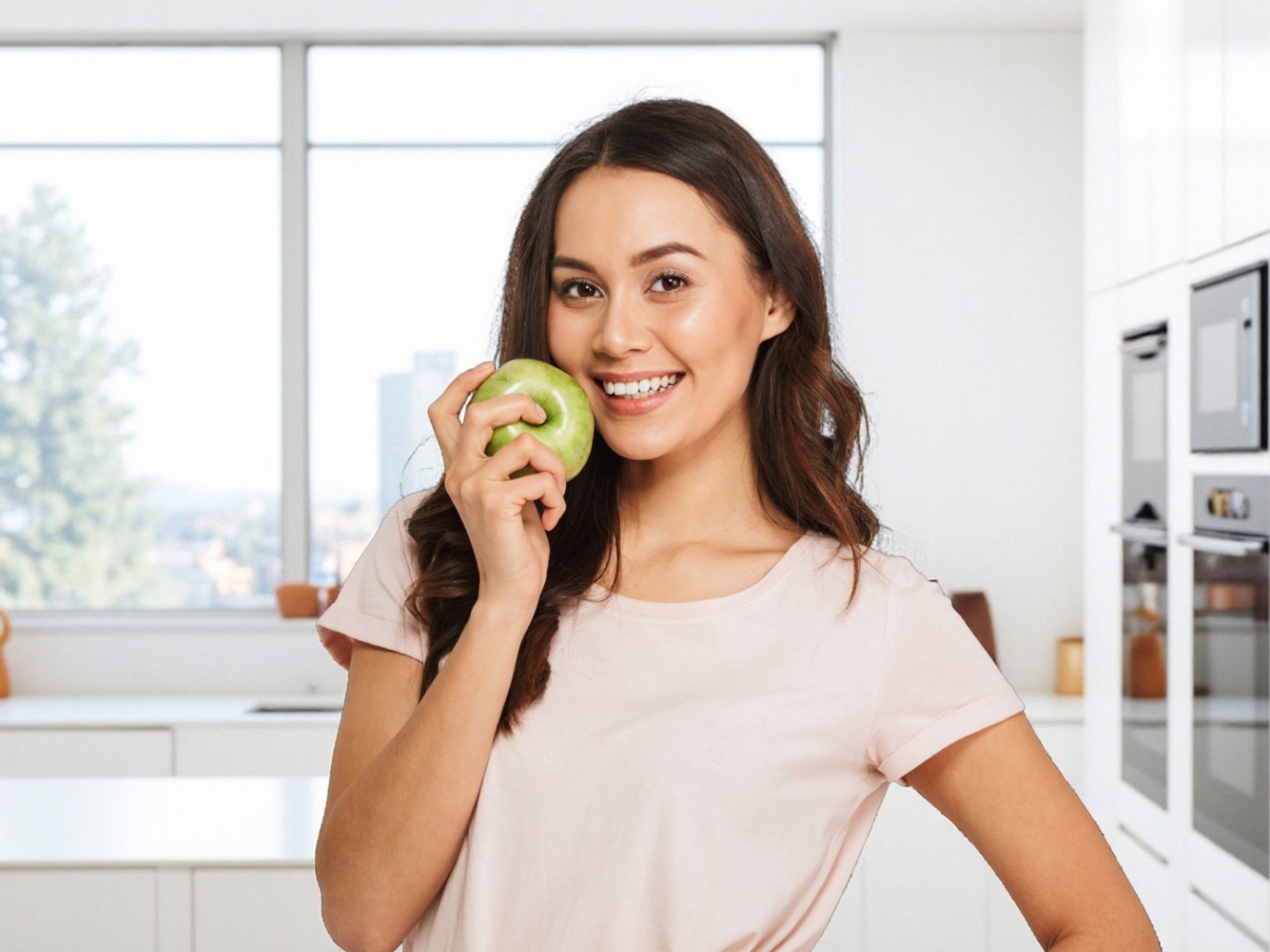 - المساعدة على الشعور بالشبع: إذا كنتِ تميلين لتناول وجبات خفيفة غير صحية في الليل، فإن أكل تفاحة يمنحكِ شعوراً بالشبع بفضل محتواها من الماء والألياف، ما يساعد في التحكّم في الوزن.