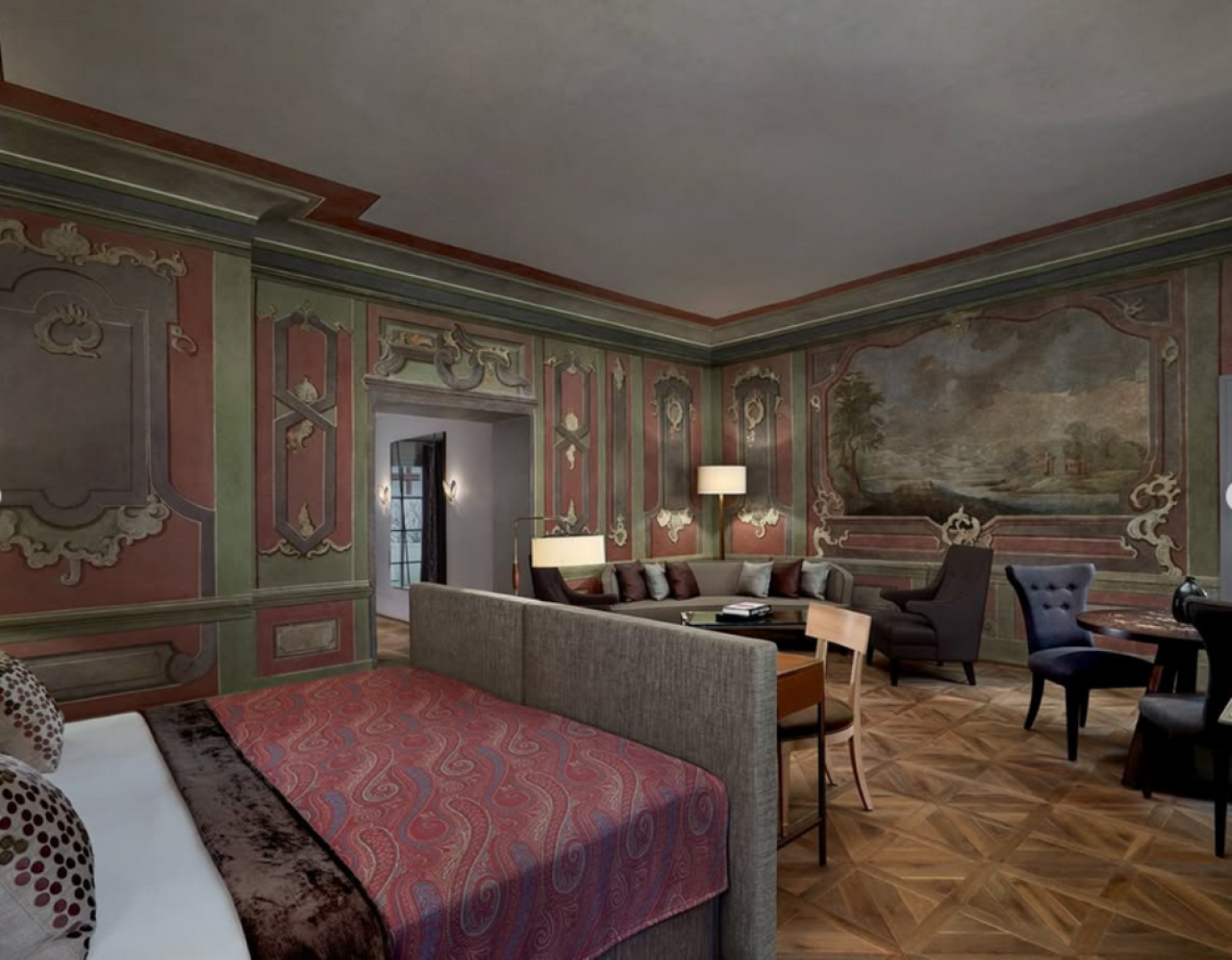 في القرنين السابع عشر والثامن عشر، أضفت حقبة الباروك فخامتها المذهّبة على العديد من مباني براغ، من بينها هذا الفندق العريق في حي مالا سترانا، كان في الأصل بناءً من عصر النهضة قبل أن يتّخذ طابع الباروك الكامل أواخر القرن السابع عشر، بإضافة واجهته المزخرفة وتوسيع مساحاته وبناء برج لا يزال يزيّن الأفق، اليوم، يقدّم فندق Alchymist Grand Hotel and Spa تجربة إقامة غارقة في رفاهية الباروك؛ أجنحته مزدانة بالأقمشة الحمراء الغنية والحواف الذهبية اللامعة والزخارف الجصية والرخام الإيطالي المتلألئ، وتحتفظ بعض الغرف بأسقف خشبية أصلية تروي عبر رسومها الباهتة حكايات الفاكهة والحيوانات والرموز القديمة، بينما تفيض غرف أخرى بالأقواس المقوّسة التي تتوّجها زخارف على شكل أصداف بحرية.