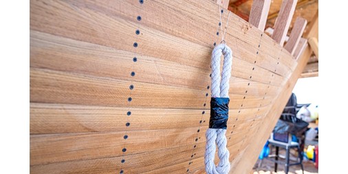 وذكر أن خطوات بناء السفينة تكمن أولا في اختيار نوع من الخشب الصلب يسمى «البيص») ويعد أساس قاعدة السفينة بعد فحصه والتأكد من خلوه العيوب.