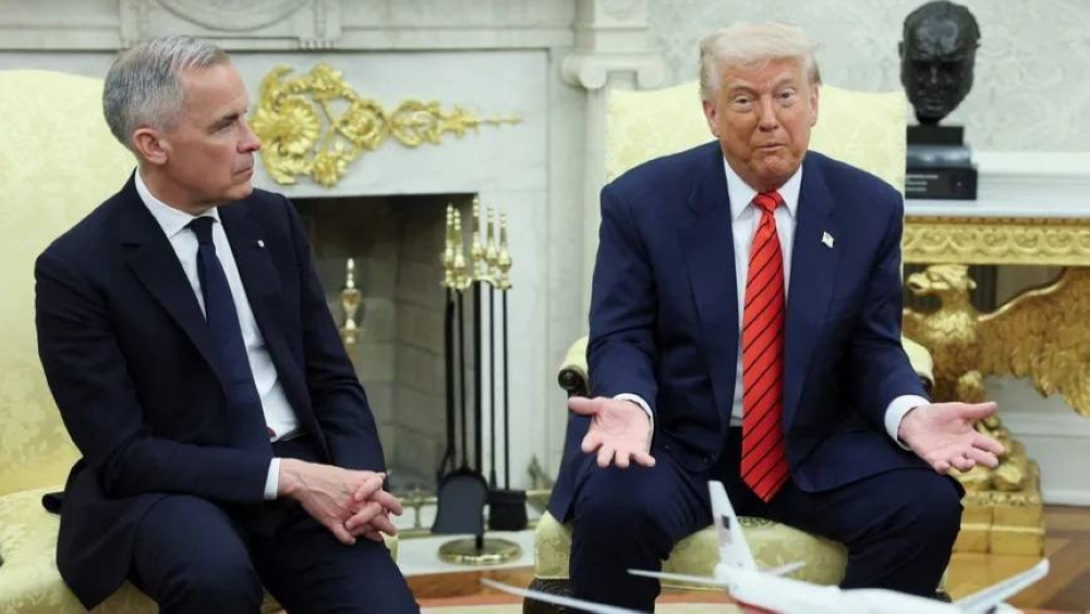 ورد عليه ترمب بالقول: «لا تقل أبداً»، مما دفع بـ«كارني» بالابتسام والقول: «أبداً، أبداً».
