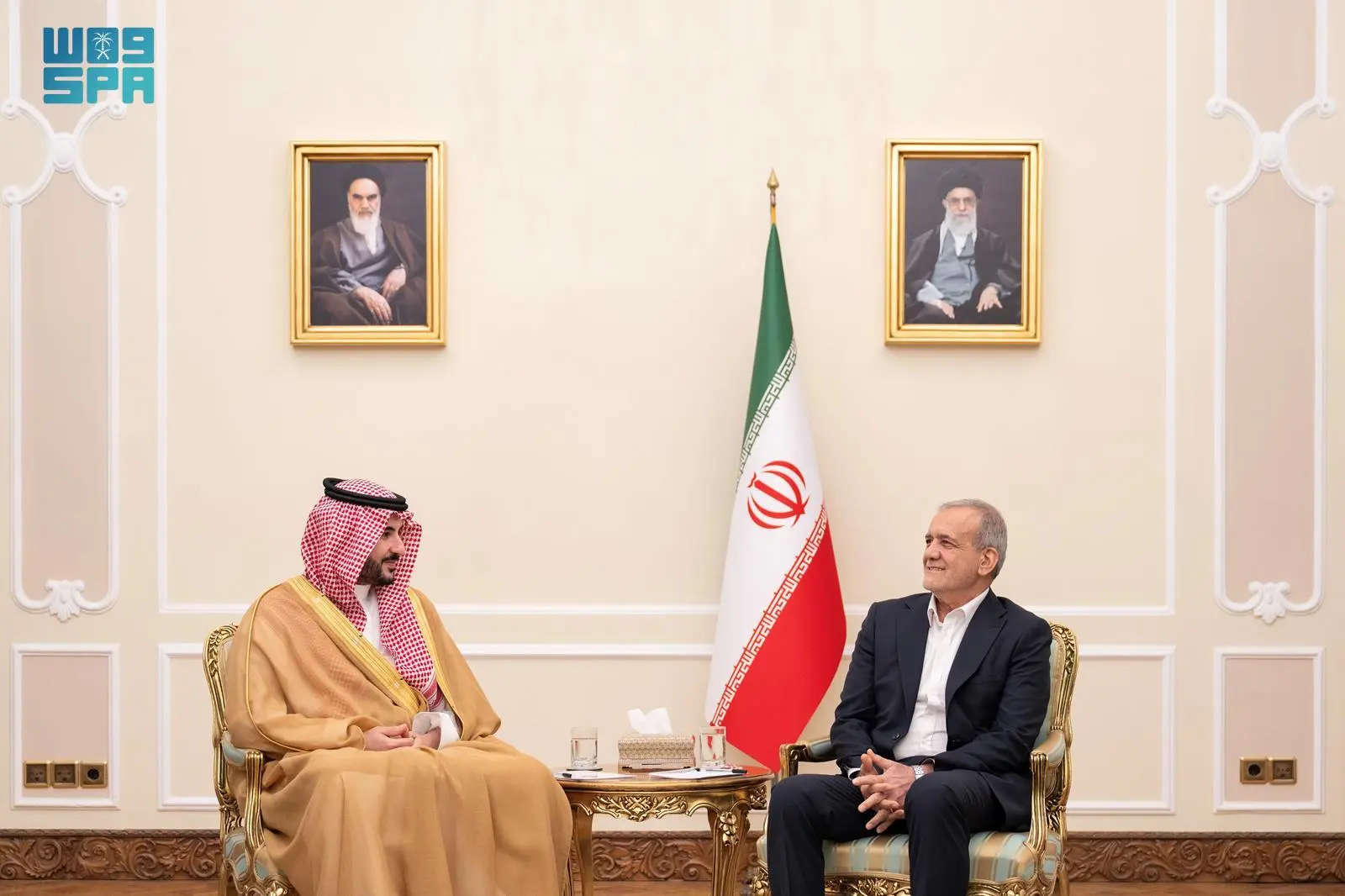 بتوجيه من القيادة أيدها الله التقى صاحب السمو الملكي الأمير خالد بن سلمان بن عبدالعزيز وزير الدفاع، في القصر الرئاسي بالعاصمة الإيرانية طهران اليوم، فخامة الرئيس الدكتور مسعود بزشكيان رئيس الجمهورية الإسلامية الإيرانية.