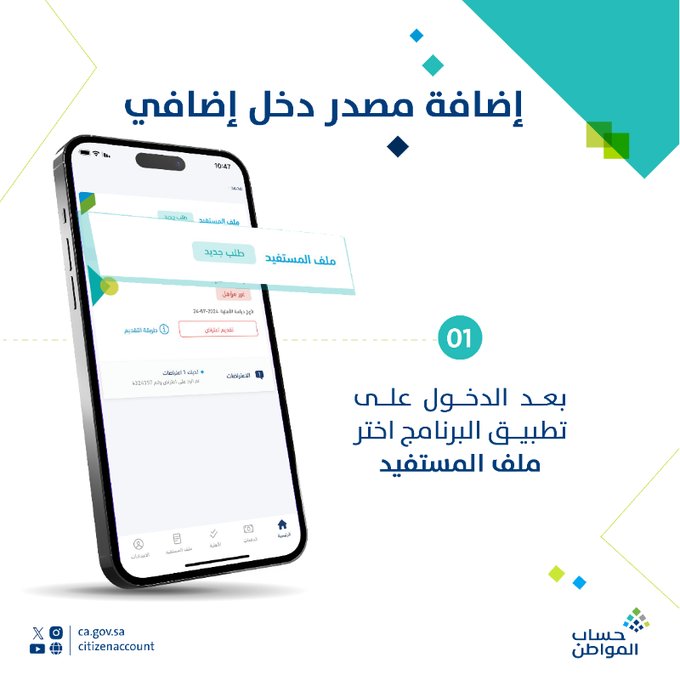 خطوات إضافة مصدر دخل إضافي للمستفيد الرئيسي في حسا…