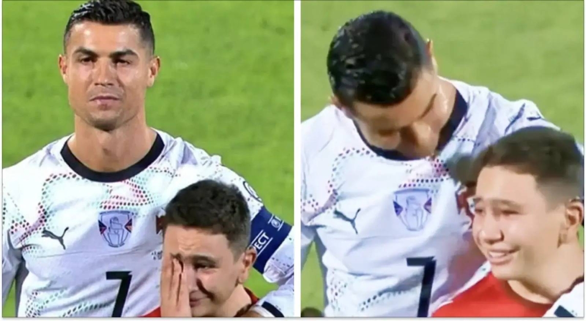 وفور دخول اللاعبين إلى أرض الملعب واصطفافهم لسماع النشيد الوطني، لم يتمالك طفل أرميني دموعه من شدة فرحته بمرافقة رونالدو، ليتفاعل معه النجم البرتغالي بابتسامة وعناق، في لقطة نالت إعجاب المتابعين عبر مواقع التواصل.