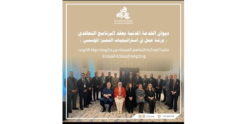 تنفيذا لمذكرة التفاهم المبرمة بين حكومتي الكويت والمملكة المتحدة اختتم ديوان الخدمة المدنية البرنامج التعاقدي بعنوان ” ورشة عمل في استراتيجيات التميز المؤسسي ” .