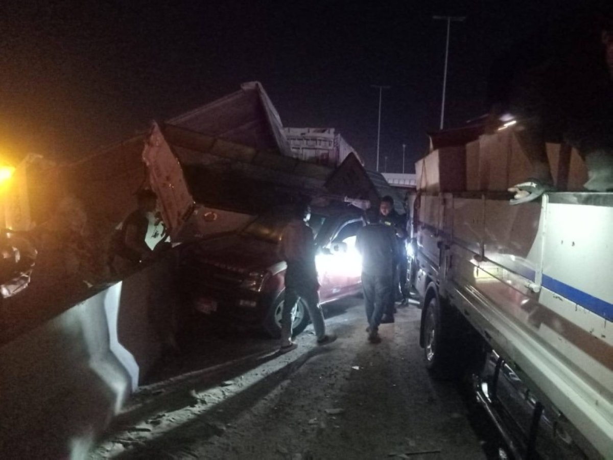 لقي شخصان مصرعهما وأصيب 41 آخرون في حادثة تصادم مروعة بين 3 سيارات تريلا و5 سيارات ملاكي وأتوبيسين بطريق السويس.