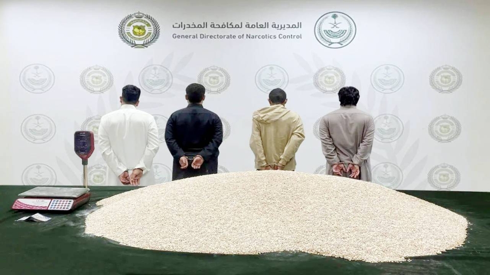 ضبطت المديرية العامة لمكافحة المخدرات (1,520,000) قرص من مادة الإمفيتامين المخدر مخبأة داخل شحنة طاولات بمنطقة الرياض، وقبضت على مستقبليها بمنطقتي الرياض، والشرقية، وهم ثلاثة وافدين من الجنسية السورية، ومواطن.