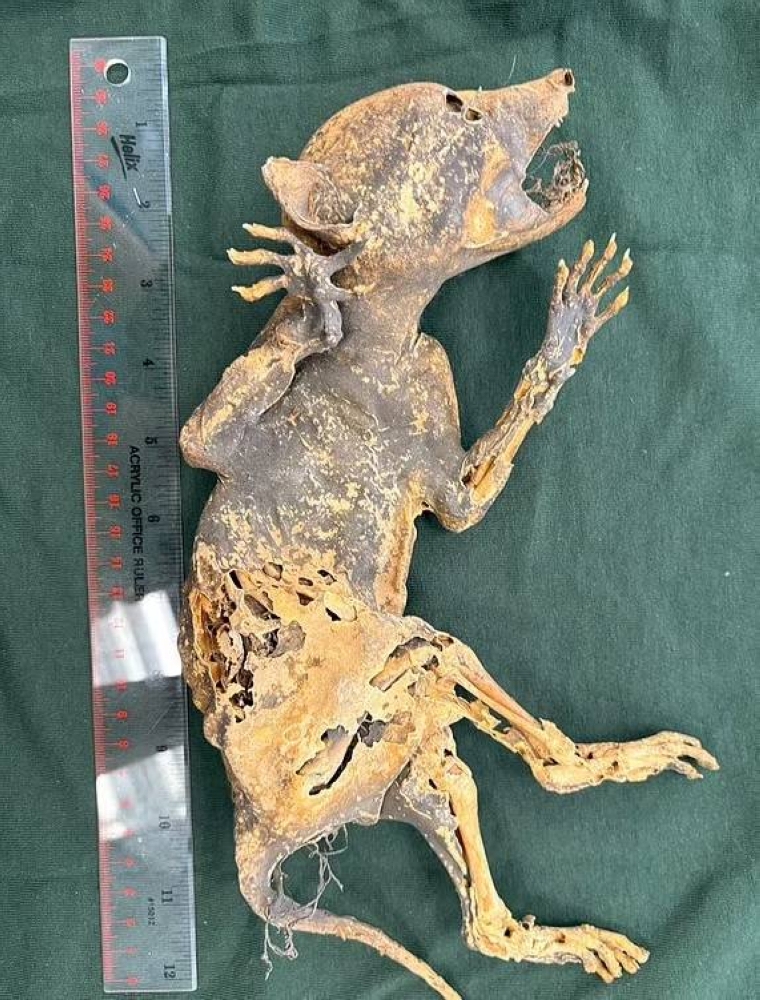 وتعتقد كارتاليس أن الحيوان ربما دخل المبنى عبر فتحة تهوية، ثم علق هناك وتعرض للتحنيط الطبيعي بفعل الهواء الدافئ والجاف في الداخل. وعلى الرغم من أن عمر المبنى يعود إلى عام 1889، إلا أن عمر المخلوق المحنط لا يزال غير معروف.