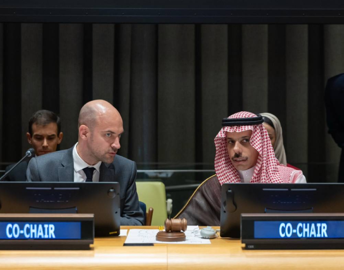 رأس وزير الخارجية الأمير فيصل بن فرحان بن عبدالله، بالشراكة مع وزير الخارجية الفرنسي جان نويل بارو، في مقر الأمم المتحدة بمدينة نيويورك الأمريكية اليوم، الجلسة الافتتاحية للمؤتمر الدولي رفيع المستوى حول التسوية السلمية لقضية فلسطين وتنفيذ حل الدولتين على المستوى الوزاري، الذي ترأسه المملكة العربية السعودية بالشراكة مع الجمهورية الفرنسية.