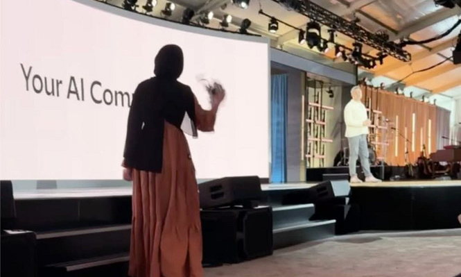 الموظفة في "مايكروسوفت"، ابتهال أبو السعد، (مغربية)، صاحت وهي تسير باتجاه المسرح "مصطفى، عار عليك" فتوقف سليمان عن إلقاء كلمته. وأضافت "أنت تزعم أنك تهتم باستخدام الذكاء الاصطناعي للخير ولكن مايكروسوفت تبيع أسلحة الذكاء الاصطناعي إلى الجيش الإسرائيلي. 50 ألف شخص ماتوا ومايكروسوفت تدعم هذه الإبادة الجماعية في منطقتنا".