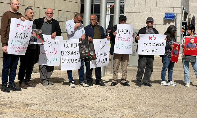 وقفة احتجاجية أمام المحكمة في مدينة حيفا رفضا لاعتقال القيادي في حركة "أبناء البلد"، رجا إغبارية، وتحويله للاعتقال الإداري